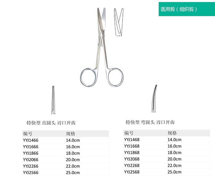 產品用途:解剖,剪斷或分離剪開組織。 組織剪又名梅氏剪,多為彎剪,銳利而精細用來解剖,剪斷或分離剪開組織。通常淺部手術操作用直剪,深部手術操作用彎剪