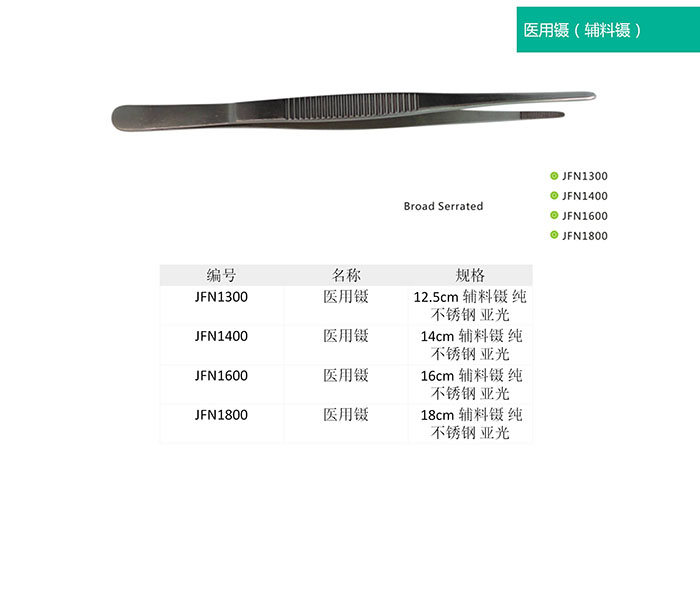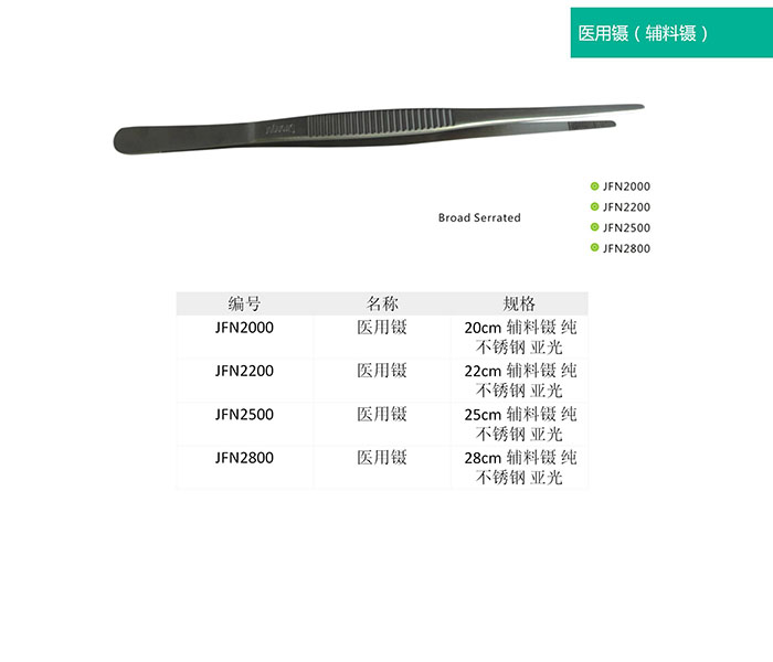 1.有齒鑷(Teeth Forceps):又叫組織鑷,鑷的尖端有齒,齒又分為粗齒與細齒,粗齒鑷用于夾持較硬的組織,損傷性較大,細齒鑷用于精細手術(shù),如肌腱縫合、整形手術(shù)等。因尖端有鉤齒、夾持牢固,但對組織有一定損傷。