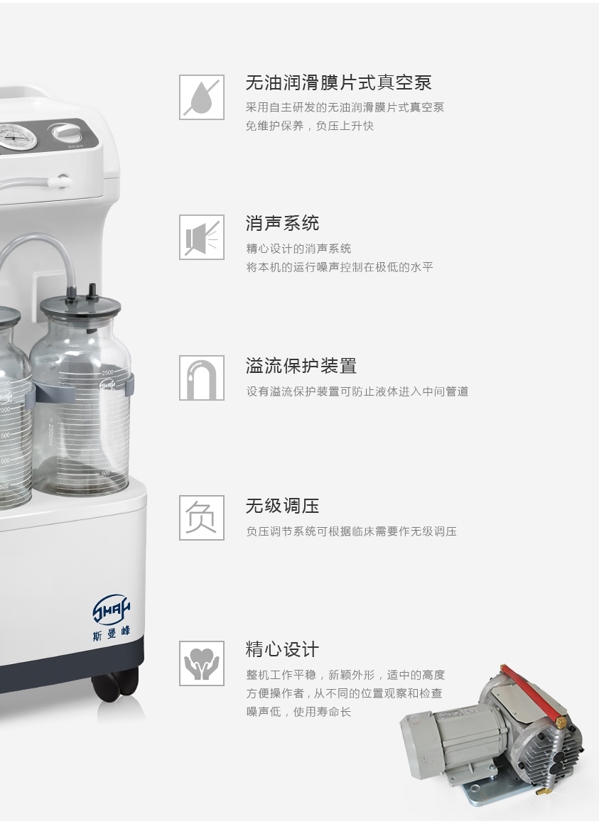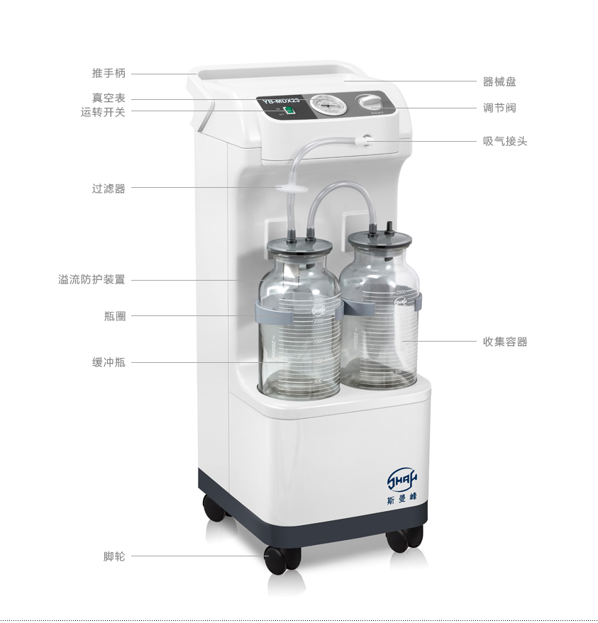 YB-MDX23型電動(dòng)吸引器(膜式)是一種結(jié)構(gòu)新穎、高負(fù)壓、大流量的醫(yī)用吸引裝置。適用于醫(yī)療機(jī)構(gòu)作吸除患者氣道內(nèi)的分泌物和手術(shù)時(shí)患者體內(nèi)滲出物、沖洗液之用,產(chǎn)品不適用于流產(chǎn)吸引。注冊(cè)證號(hào):滬械注準(zhǔn)20152540793